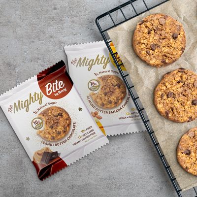 [/vc_column_text][vc_empty_space height=”20px”][vc_column_text][addtoany][/vc_column_text][vc_row_inner][vc_column_inner][vc_column_text]MightyMeals and Berg Bites have teamed-up to bring their customers the ultimate high protein cookie, The Mighty Bite. With only 1 gram of natural sugar and 16 grams of plant protein, this delicious grab-and-go snack gives you a healthy energy boost and will satisfy your sweet tooth without the glucose spike. “MightyMeals has been a huge supporter of us for the past three years, and we’ve always discussed collaborating in this way, but this idea really came to fruition about 4 months ago,” says Berg Bites owner Daniel Berg. “Once we realized that we had the capability to create a sugar-free, high protein cookie, both MightyMeals’ co-owner Stefano Marzano and I knew that this would be the perfect fit for both of our markets.”